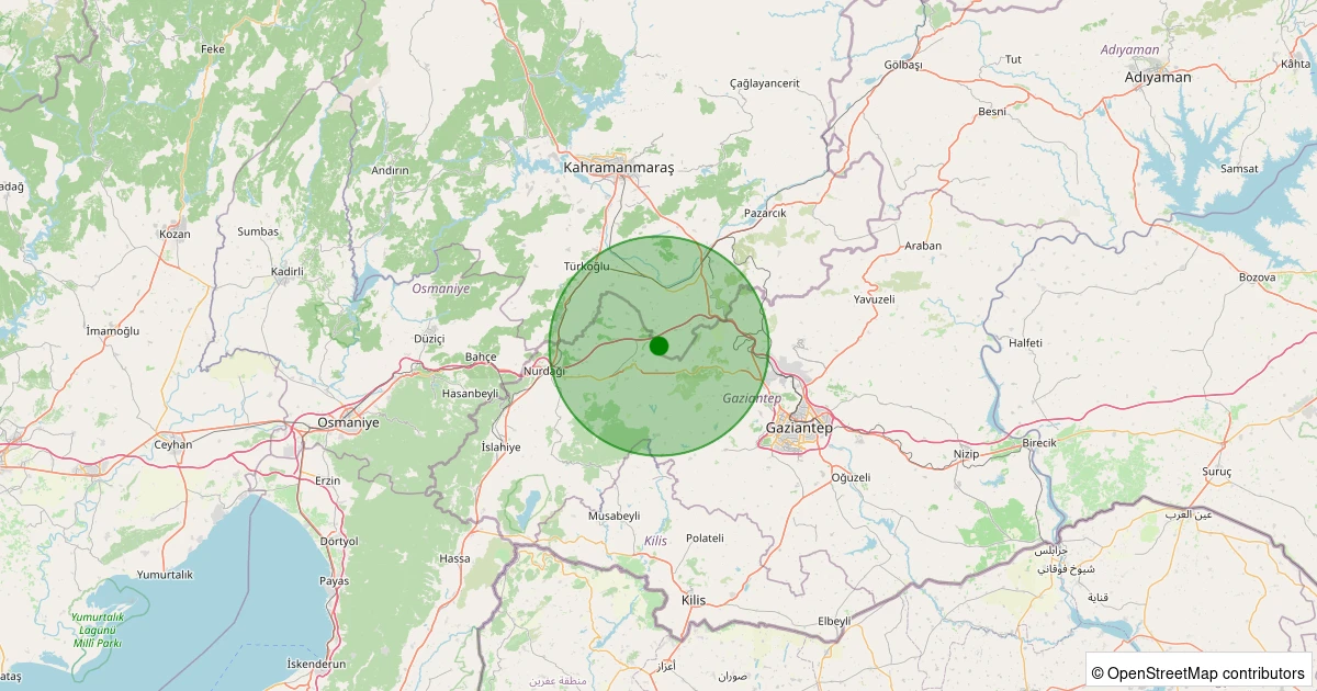 Son 7 gün içinde Pazarcık noktasından 100 km yarıçap içerisinde meydana gelen diğer depremler: