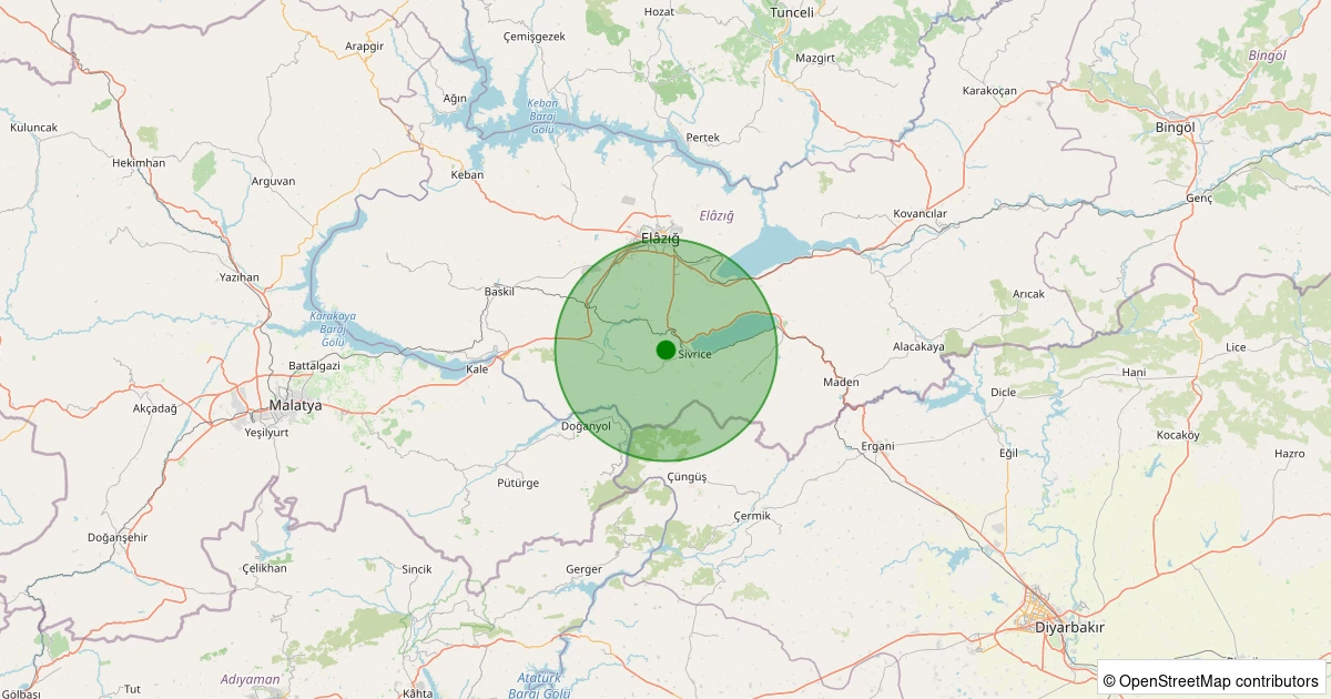 Son 7 gün içinde Sivrice - Alıncık Köyü noktasından 100 km yarıçap içerisinde meydana gelen diğer depremler: