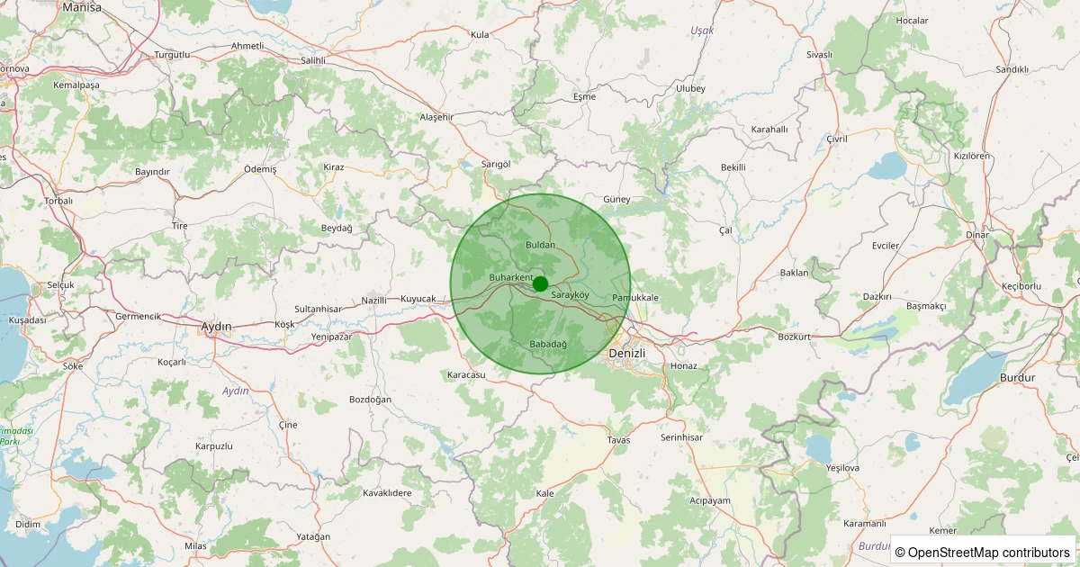 Son 7 gün içinde Sarayköy - Karataş Köyü noktasından 100 km yarıçap içerisinde meydana gelen diğer depremler: