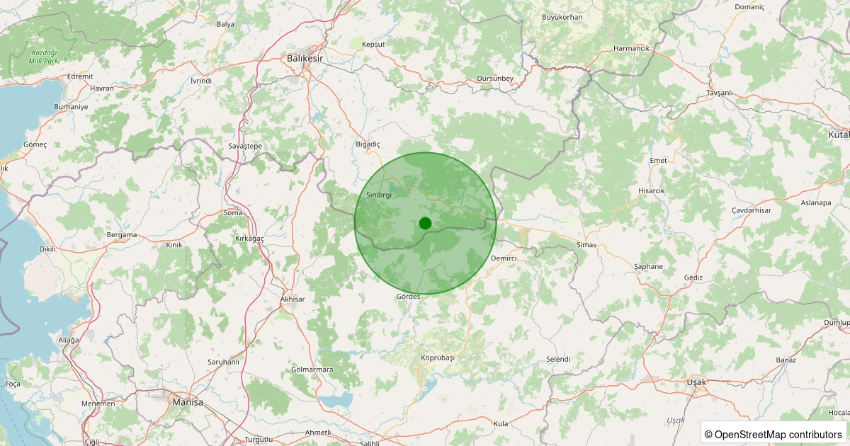 Son 7 gün içinde Sındırgı - Küçükdağdere noktasından 100 km yarıçap içerisinde meydana gelen diğer depremler: