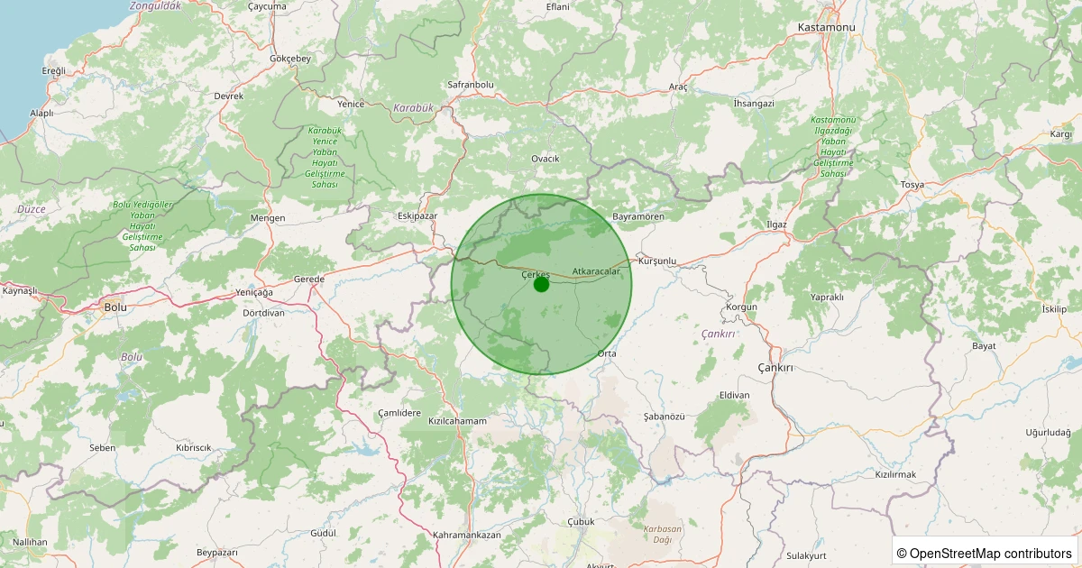 Son 7 gün içinde Çerkeş - Bozoğlu Köyü noktasından 100 km yarıçap içerisinde meydana gelen diğer depremler: