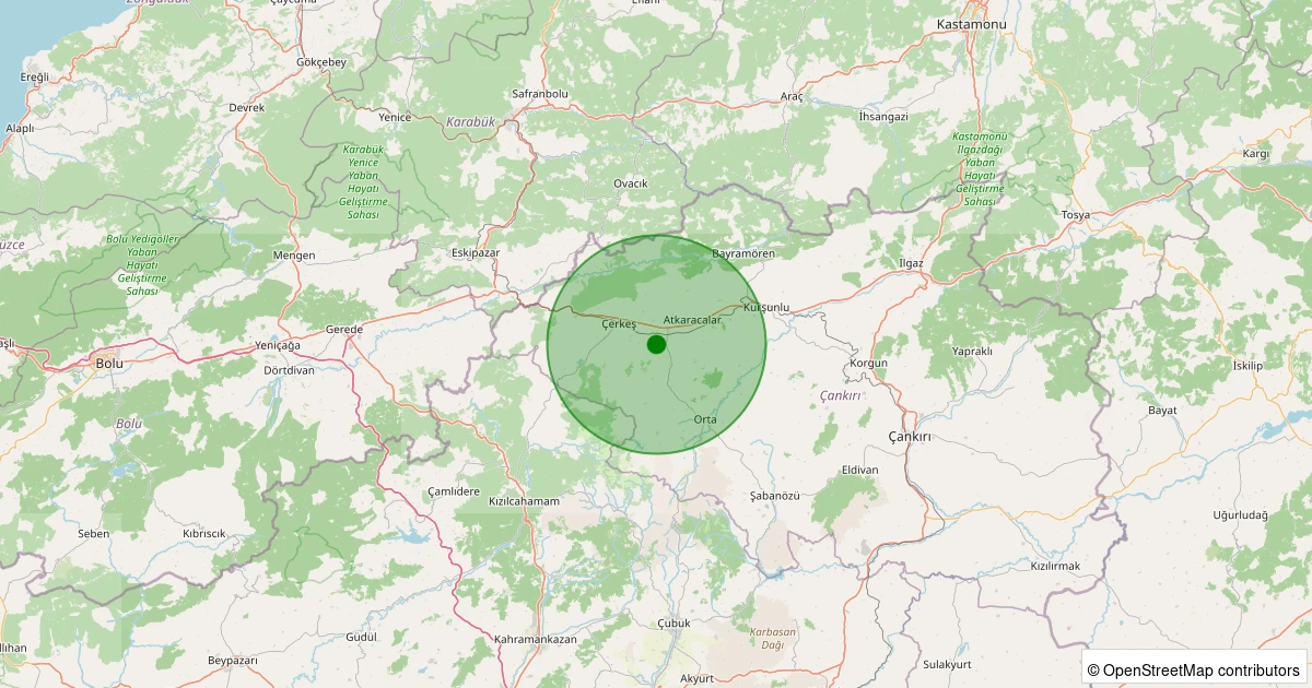 Son 7 gün içinde Çerkeş - Saçak/Yalıözü noktasından 100 km yarıçap içerisinde meydana gelen diğer depremler: