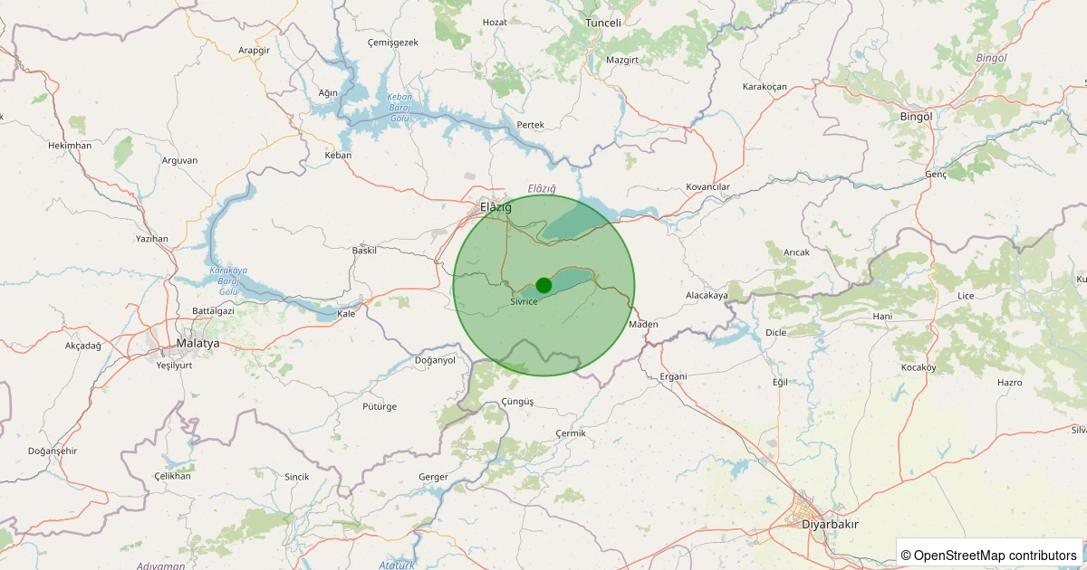 Son 7 gün içinde Sivrice - Güney Köyü noktasından 100 km yarıçap içerisinde meydana gelen diğer depremler: