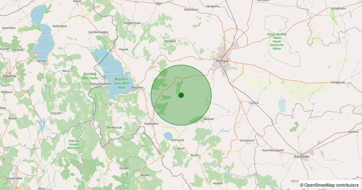 Son 7 gün içinde Meram - Evliya Tekke Köyü noktasından 100 km yarıçap içerisinde meydana gelen diğer depremler:
