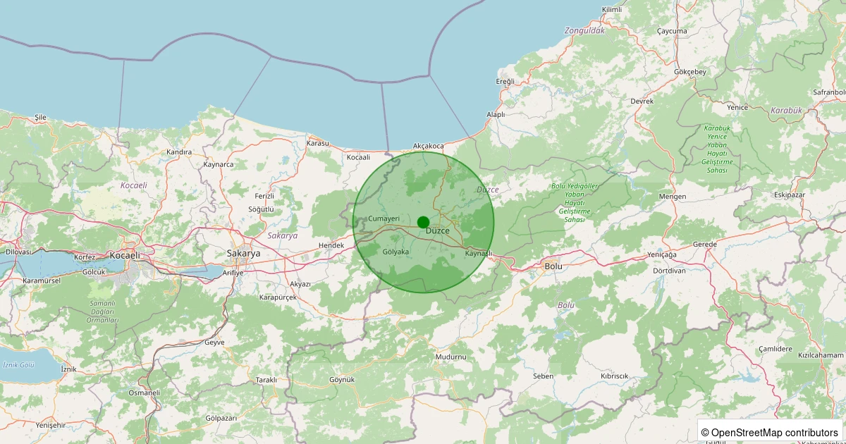 Son 7 gün içinde Çilimli - Alacamescit Köyü noktasından 100 km yarıçap içerisinde meydana gelen diğer depremler: