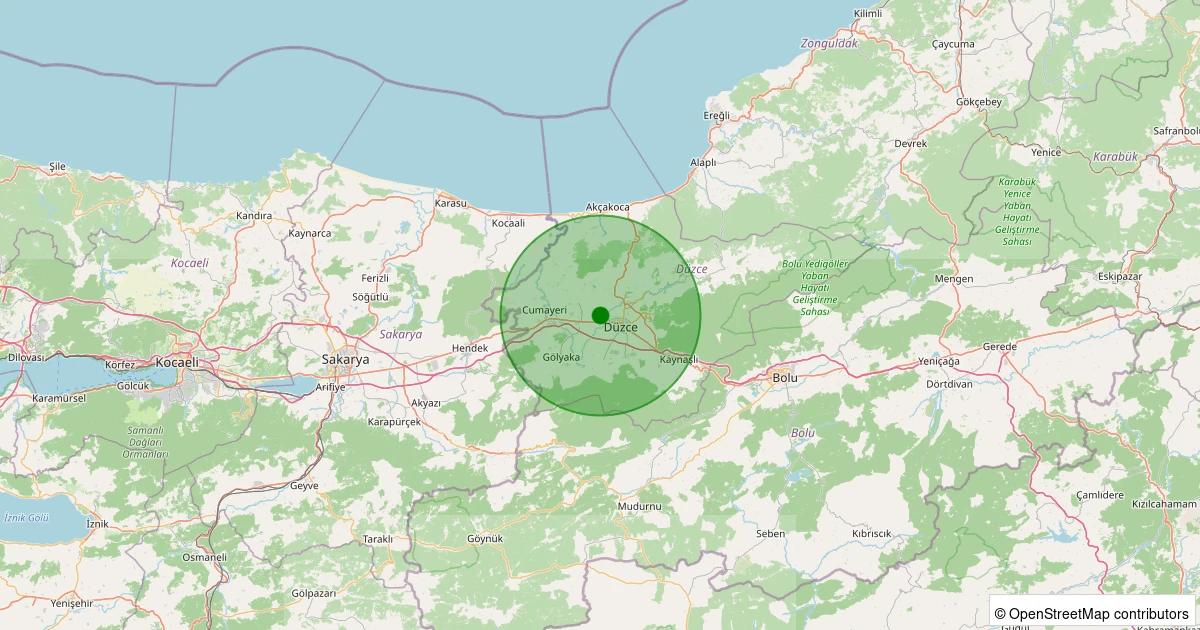 Son 7 gün içinde Çilimli - Alacamescit Köyü noktasından 100 km yarıçap içerisinde meydana gelen diğer depremler: