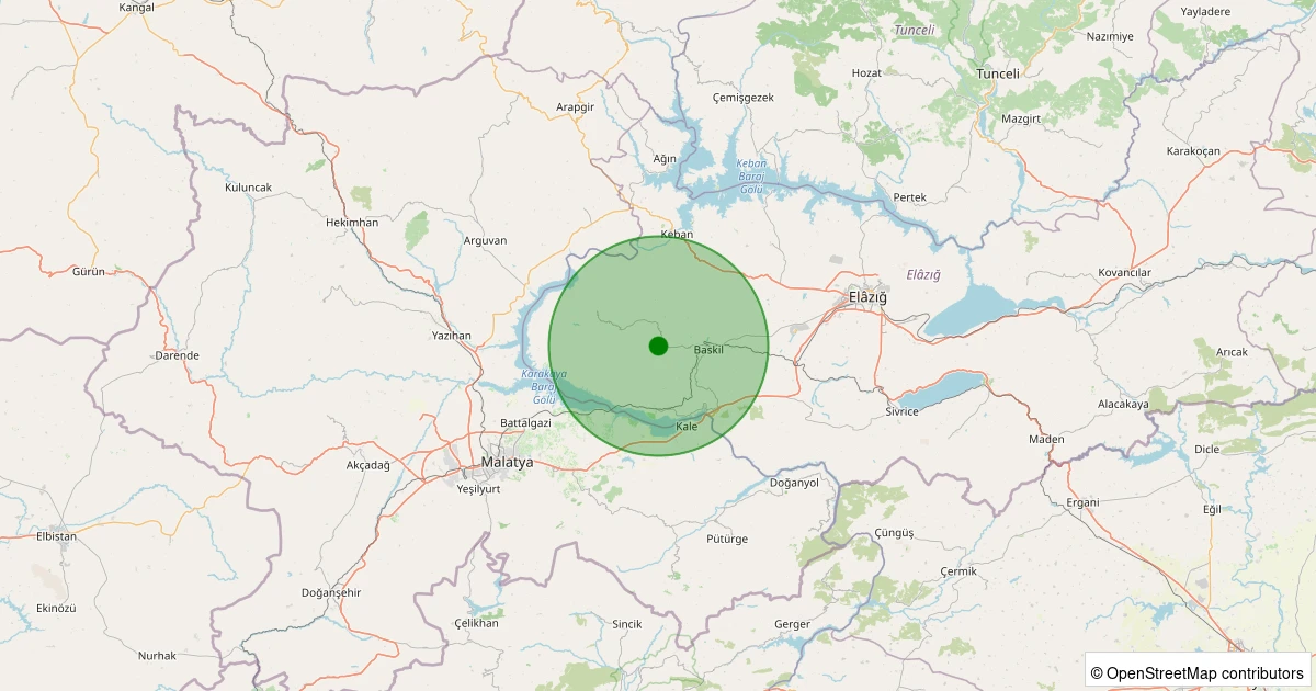 Son 7 gün içinde Baskil - Beşbölük Köyü noktasından 100 km yarıçap içerisinde meydana gelen diğer depremler: