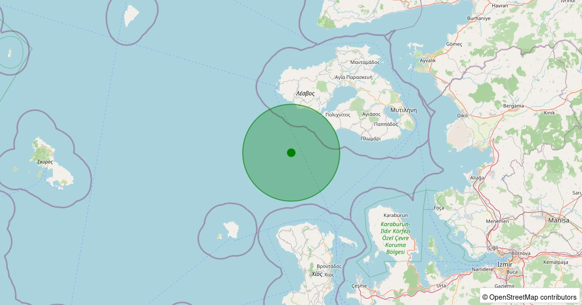 Son 7 gün içinde Ege Denizi - [51.09 km] Karaburun (İzmir) noktasından 100 km yarıçap içerisinde meydana gelen diğer depremler: