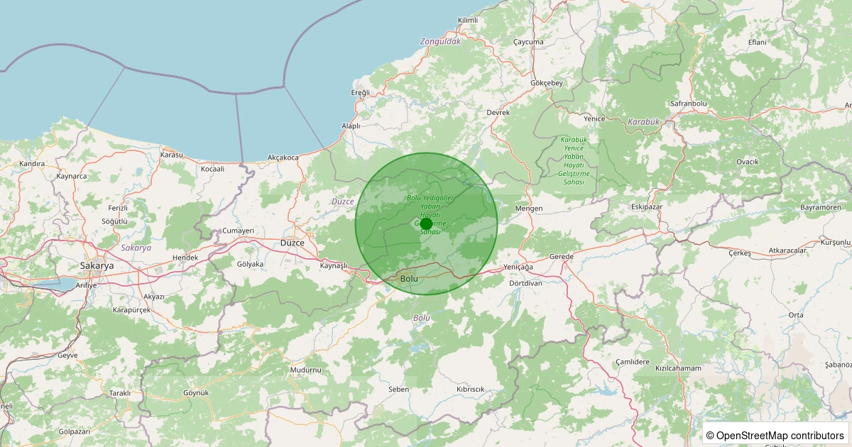 Son bir hafta içerisinde Bolu şehri Merkez noktasından 100 km yarıçap içerisinde toplamda 62 deprem kaydedilmiştir. Bu depremlerden en büyüğü 2.5 büyüklüğünde ve en sığ odaklısı 3.40 kilometre derinlikte gerçekleşmiştir.