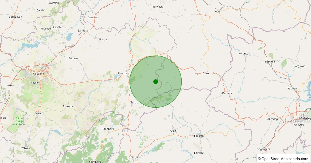 Son 7 gün içinde Sarız - Avşarobası Köyü noktasından 100 km yarıçap içerisinde meydana gelen diğer depremler: