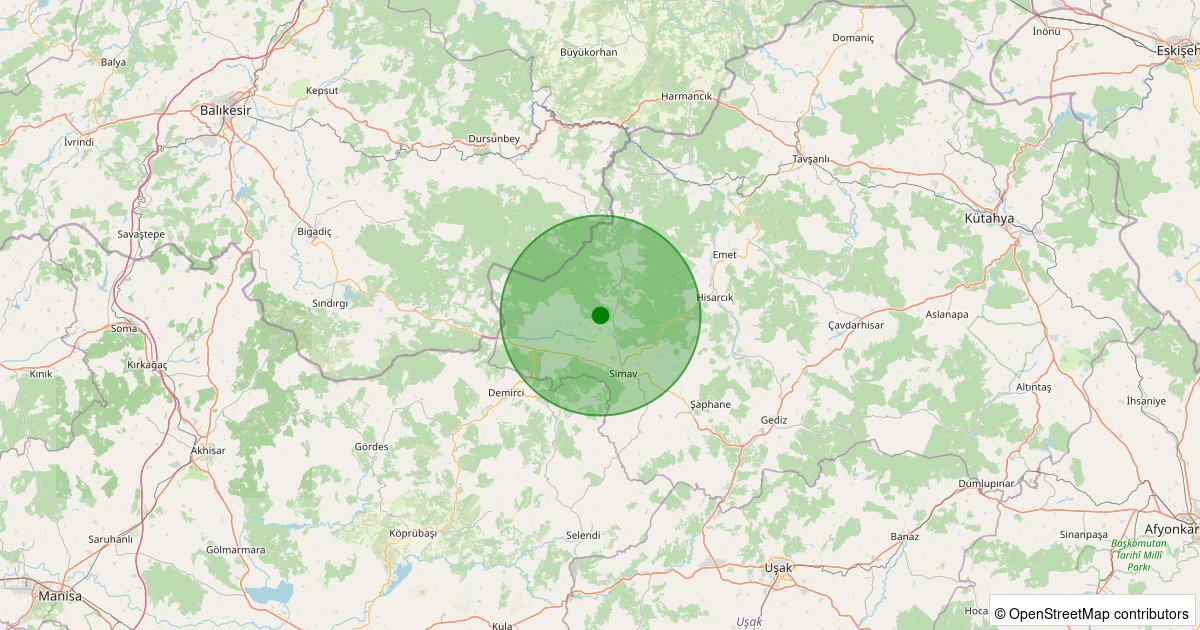 Son 7 gün içinde Simav - Koyunoba Köyü noktasından 100 km yarıçap içerisinde meydana gelen diğer depremler: