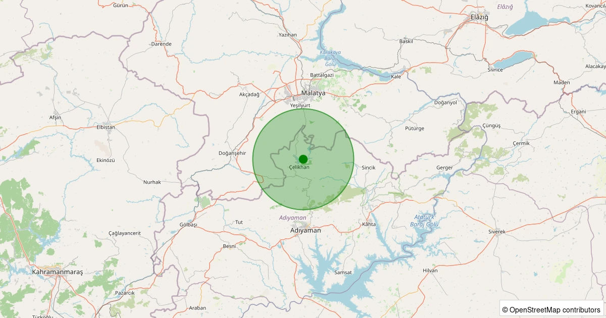 Son 7 gün içinde Çelikhan - Gölbağı Köyü noktasından 100 km yarıçap içerisinde meydana gelen diğer depremler: