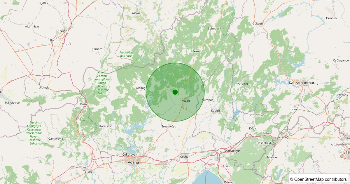 Son 7 gün içinde Kozan - Kızıllar noktasından 100 km yarıçap içerisinde meydana gelen diğer depremler: