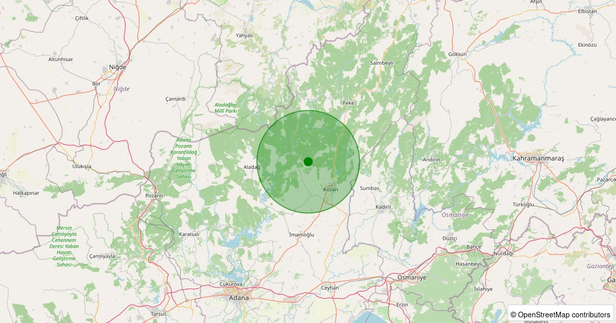 Son 7 gün içinde Kozan - Kuytucak noktasından 100 km yarıçap içerisinde meydana gelen diğer depremler: