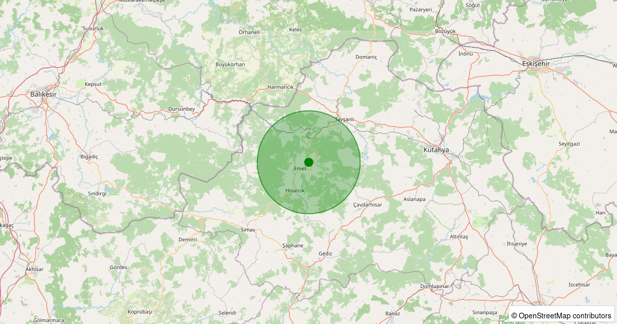 Son 7 gün içinde Emet - Köprücek Köyü noktasından 100 km yarıçap içerisinde meydana gelen diğer depremler: