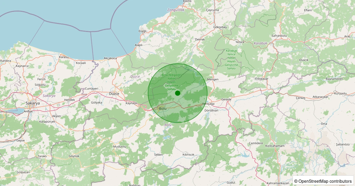 Son bir hafta içerisinde Bolu şehri Merkez noktasından 100 km yarıçap içerisinde toplamda 63 deprem kaydedilmiştir. Bu depremlerden en büyüğü 2.5 büyüklüğünde ve en sığ odaklısı 3.40 kilometre derinlikte gerçekleşmiştir.
