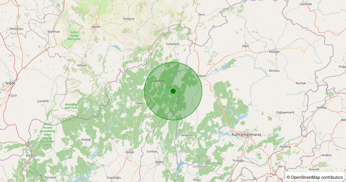 Son 7 gün içinde Saimbeyli - Aksaağaç noktasından 100 km yarıçap içerisinde meydana gelen diğer depremler: