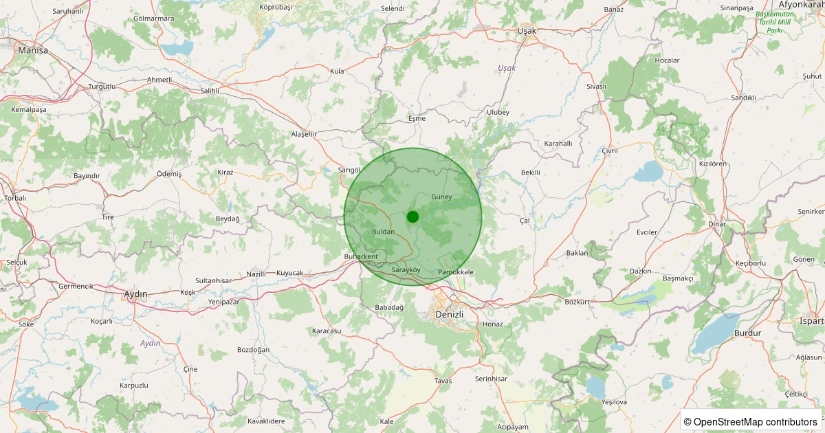 Son 7 gün içinde Buldan - Yenicekent noktasından 100 km yarıçap içerisinde meydana gelen diğer depremler: