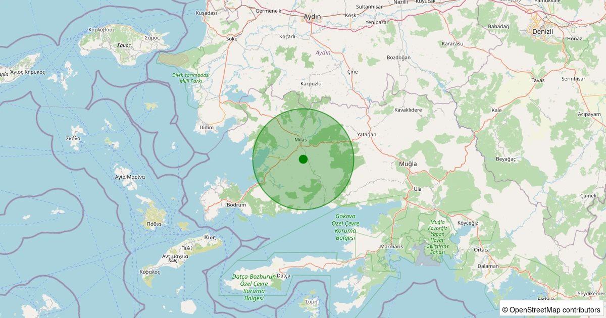Son 7 gün içinde Milas - Çamovalı noktasından 100 km yarıçap içerisinde meydana gelen diğer depremler: