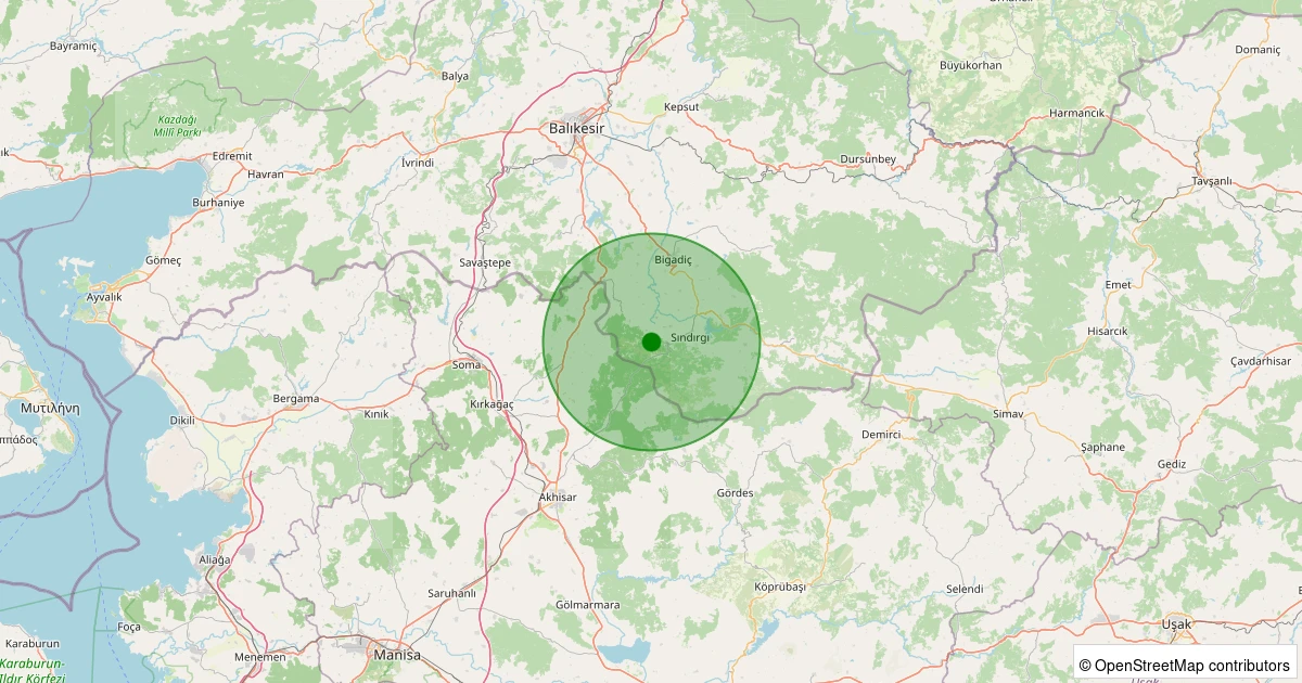 Son 7 gün içinde Sındırgı - Kozlu noktasından 100 km yarıçap içerisinde meydana gelen diğer depremler: