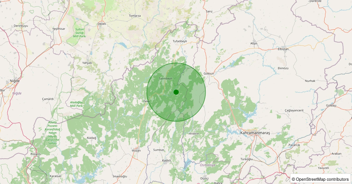 Son 7 gün içinde Saimbeyli - Karakuyu noktasından 100 km yarıçap içerisinde meydana gelen diğer depremler: