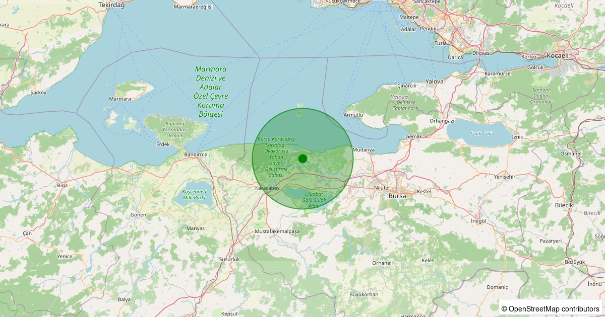 Son 7 gün içinde Karacabey - Çamlıca noktasından 100 km yarıçap içerisinde meydana gelen diğer depremler: