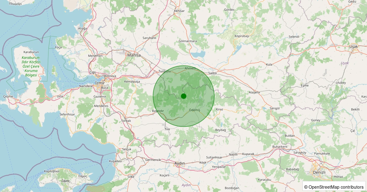Son 7 gün içinde Ödemiş - Köseler noktasından 100 km yarıçap içerisinde meydana gelen diğer depremler: