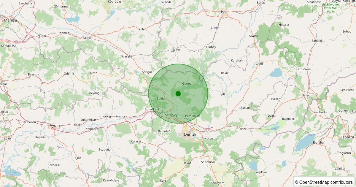 Son 7 gün içinde Buldan - Yenicekent noktasından 100 km yarıçap içerisinde meydana gelen diğer depremler: