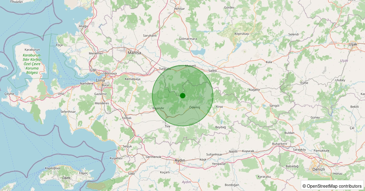 Son 7 gün içinde Ödemiş - Köseler noktasından 100 km yarıçap içerisinde meydana gelen diğer depremler: