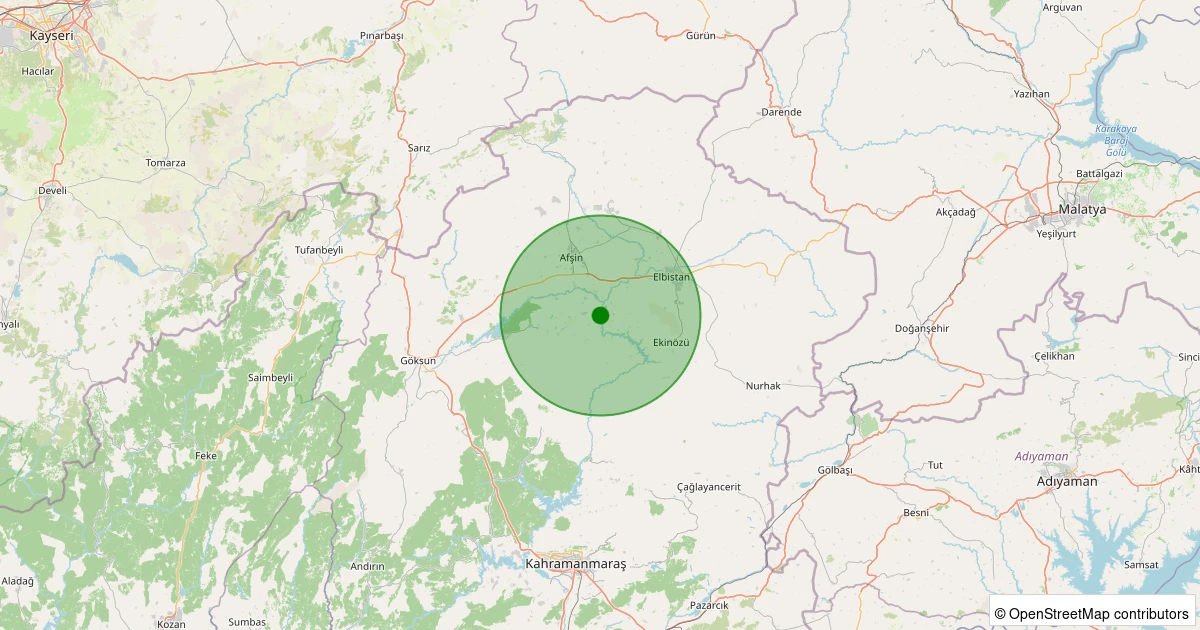 Son 7 gün içinde Göksun - Karadut noktasından 100 km yarıçap içerisinde meydana gelen diğer depremler: