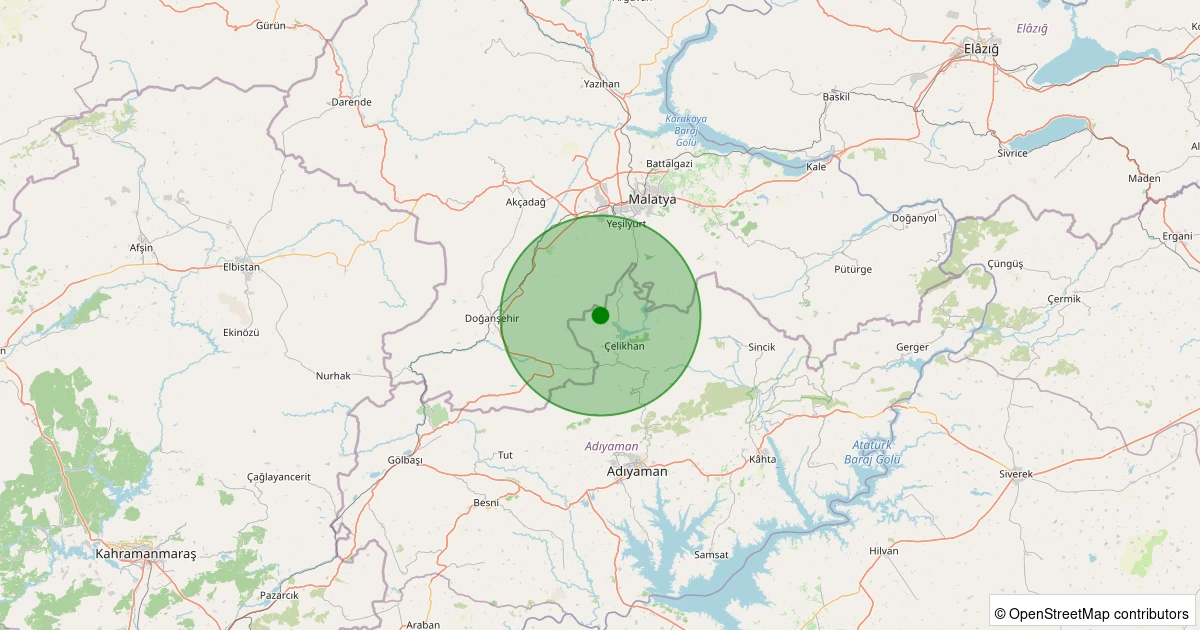 Son 7 gün içinde Çelikhan - Gölbağı Köyü noktasından 100 km yarıçap içerisinde meydana gelen diğer depremler: