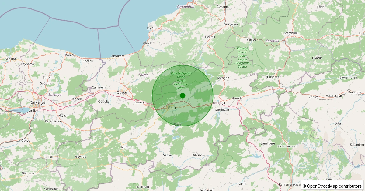 Son bir hafta içerisinde Bolu şehri Merkez noktasından 100 km yarıçap içerisinde toplamda 67 deprem kaydedilmiştir. Bu depremlerden en büyüğü 2.5 büyüklüğünde ve en sığ odaklısı 3.40 kilometre derinlikte gerçekleşmiştir.