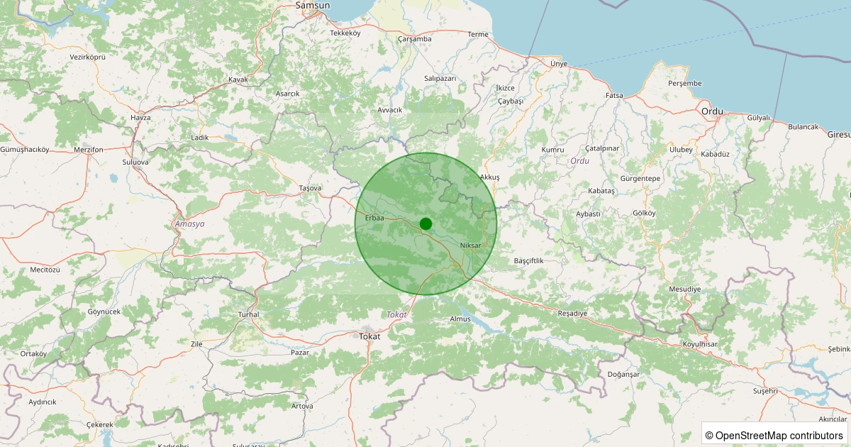 Son 7 gün içinde Niksar - Kümbetli Köyü noktasından 100 km yarıçap içerisinde meydana gelen diğer depremler: