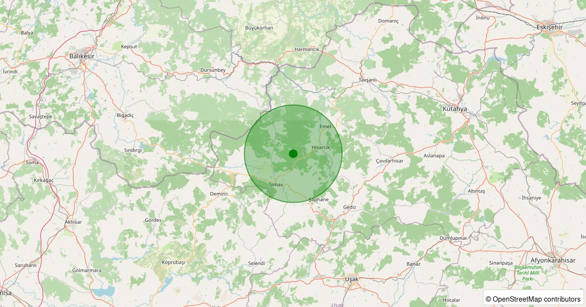 Son 7 gün içinde Hisarcık - Güldüren Köyü noktasından 100 km yarıçap içerisinde meydana gelen diğer depremler:
