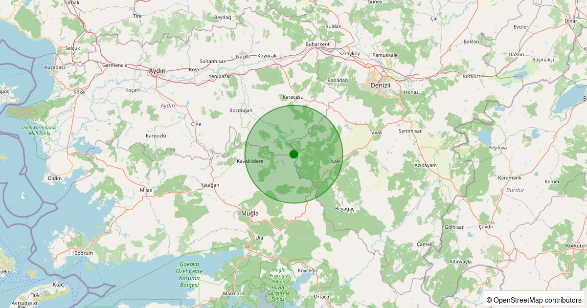 Son 7 gün içinde Menteşe - Çamoluk noktasından 100 km yarıçap içerisinde meydana gelen diğer depremler:
