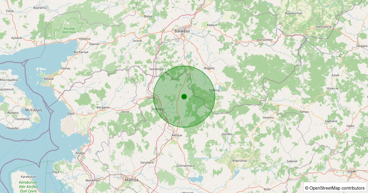 Son 7 gün içinde Kırkağaç - Dualar noktasından 100 km yarıçap içerisinde meydana gelen diğer depremler: