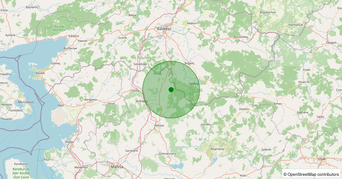 Son 7 gün içinde Kırkağaç - Dualar noktasından 100 km yarıçap içerisinde meydana gelen diğer depremler:
