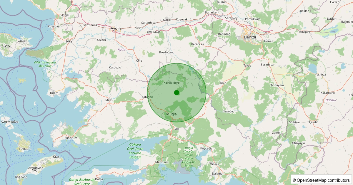 Son 7 gün içinde Kavaklıdere - Menteşe noktasından 100 km yarıçap içerisinde meydana gelen diğer depremler: