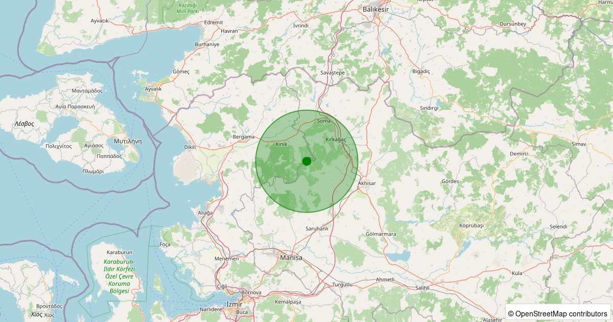 Son 7 gün içinde Akhisar - Arabacıbozköy Köyü noktasından 100 km yarıçap içerisinde meydana gelen diğer depremler: