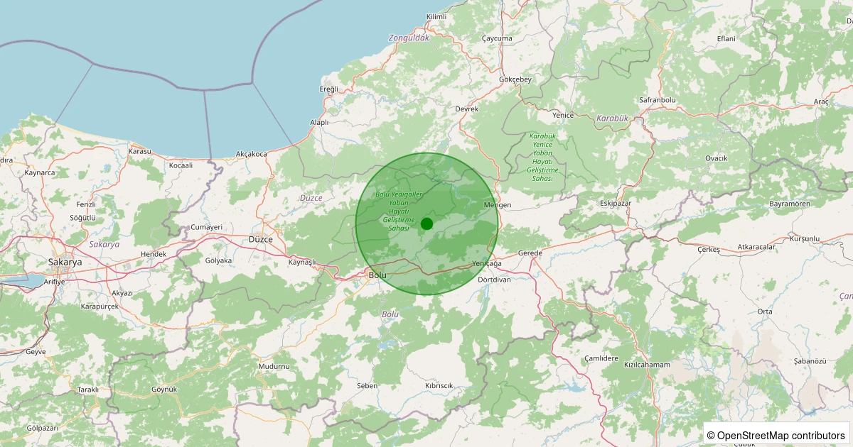 Son bir hafta içerisinde Bolu şehri Merkez noktasından 100 km yarıçap içerisinde toplamda 69 deprem kaydedilmiştir. Bu depremlerden en büyüğü 2.5 büyüklüğünde ve en sığ odaklısı 2.80 kilometre derinlikte gerçekleşmiştir.