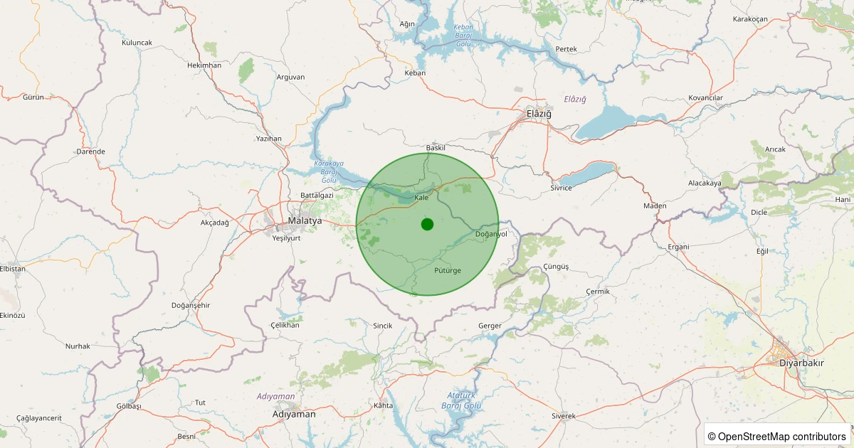 Son 7 gün içinde Pütürge - Bölükkaya Köyü noktasından 100 km yarıçap içerisinde meydana gelen diğer depremler: