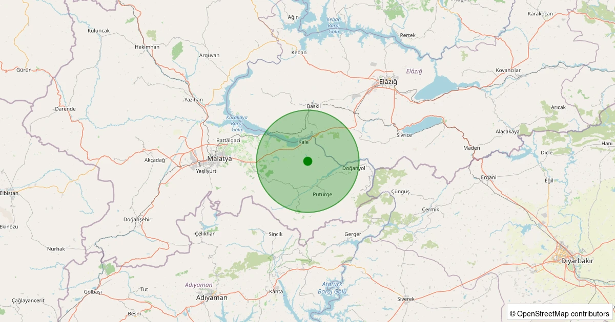 Son 7 gün içinde Pütürge - Bölükkaya Köyü noktasından 100 km yarıçap içerisinde meydana gelen diğer depremler:
