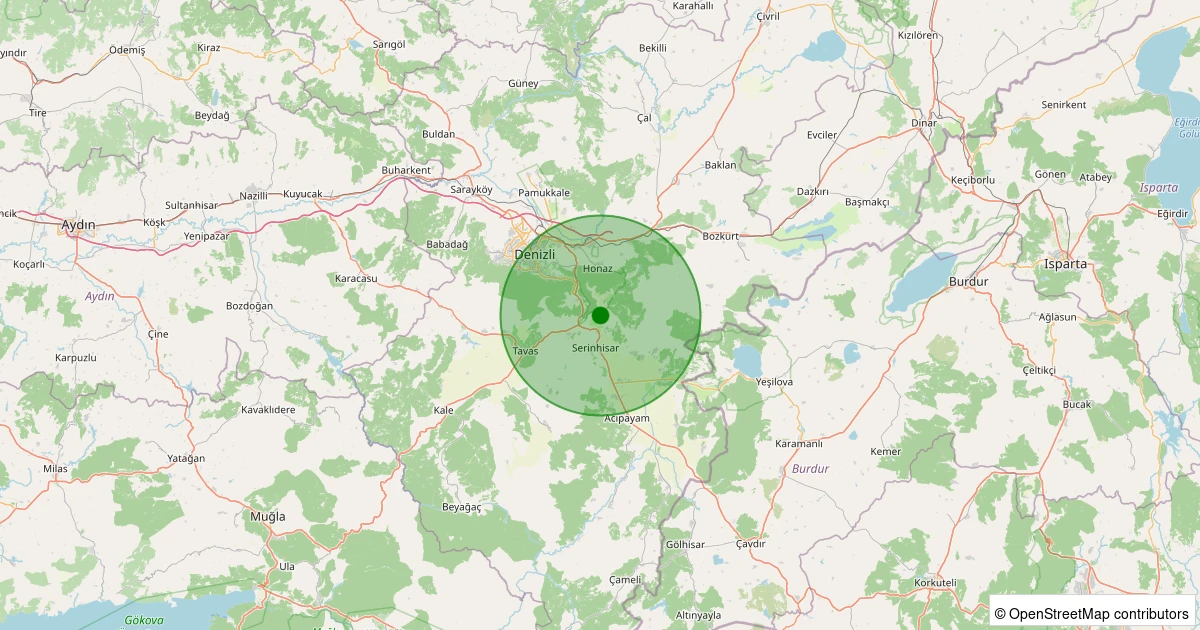 Son 7 gün içinde Serinhisar - Cumhuriyet noktasından 100 km yarıçap içerisinde meydana gelen diğer depremler: