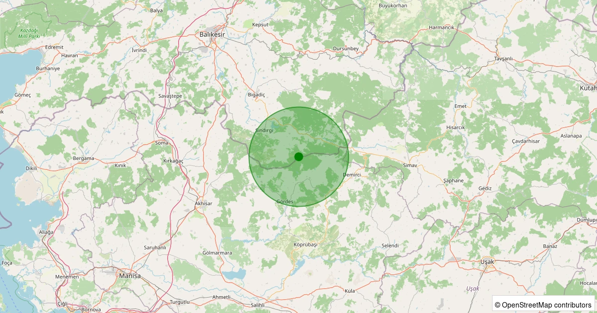 Son 7 gün içinde Sındırgı - Yaylabayır noktasından 100 km yarıçap içerisinde meydana gelen diğer depremler: