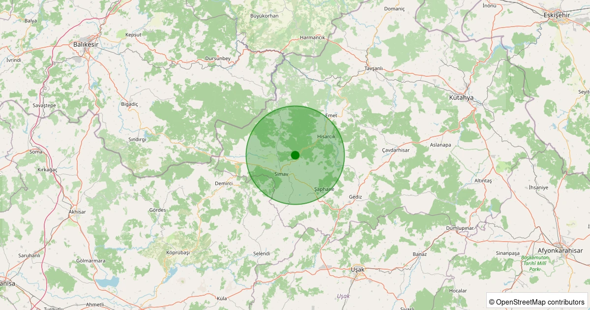 Son 7 gün içinde Simav - Karacaören Köyü noktasından 100 km yarıçap içerisinde meydana gelen diğer depremler:
