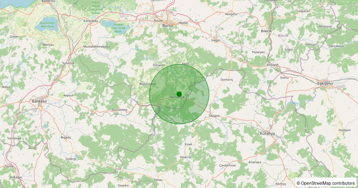 Son 7 gün içinde Harmancık - Merkez noktasından 100 km yarıçap içerisinde meydana gelen diğer depremler:
