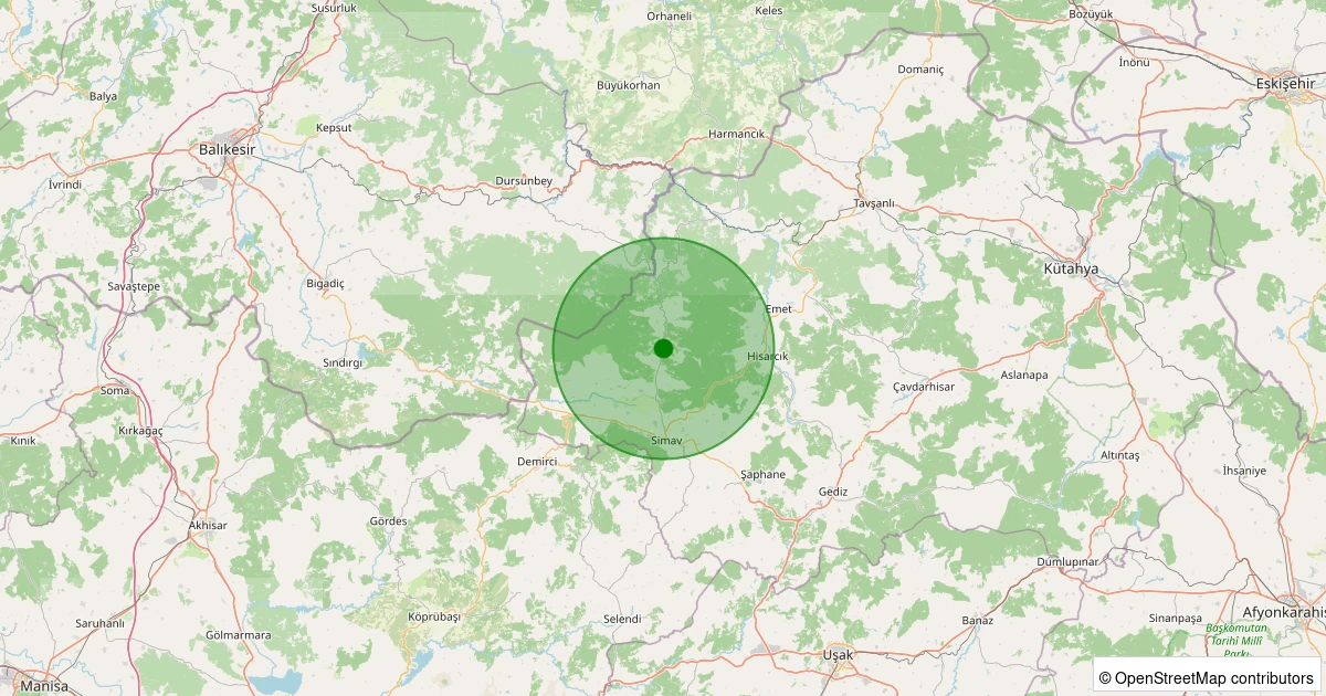 Son 7 gün içinde Simav - Yeşildere Köyü noktasından 100 km yarıçap içerisinde meydana gelen diğer depremler: