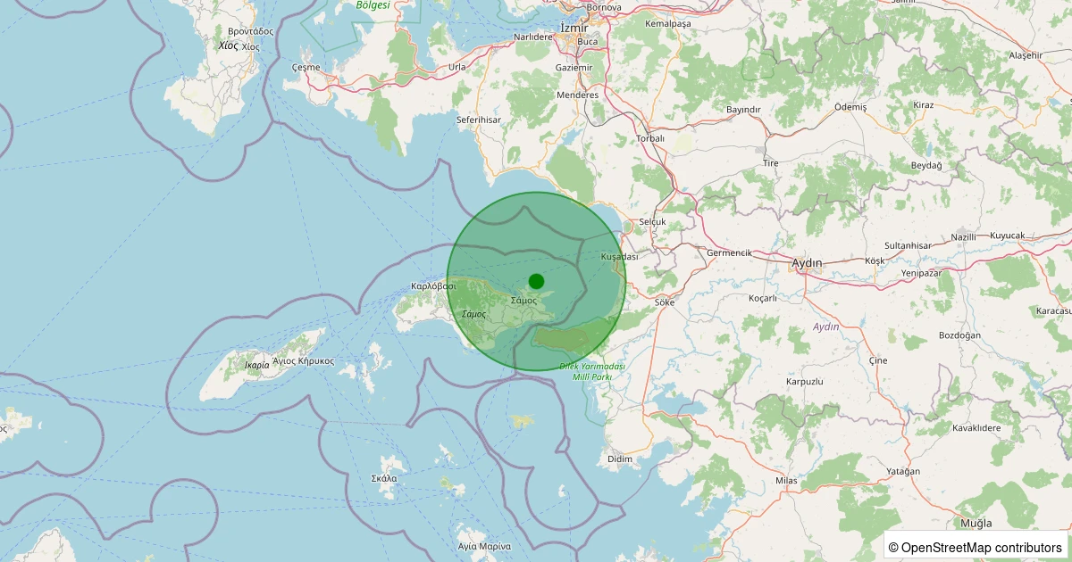 Son 7 gün içinde Ege Denizi - Kuşadası Körfezi - [21.04 km] Kuşadası (Aydın) noktasından 100 km yarıçap içerisinde meydana gelen diğer depremler: