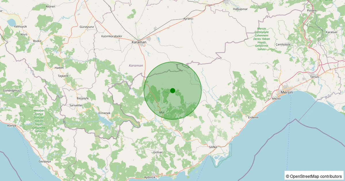 Son 7 gün içinde Mut - Çivi Köyü noktasından 100 km yarıçap içerisinde meydana gelen diğer depremler: