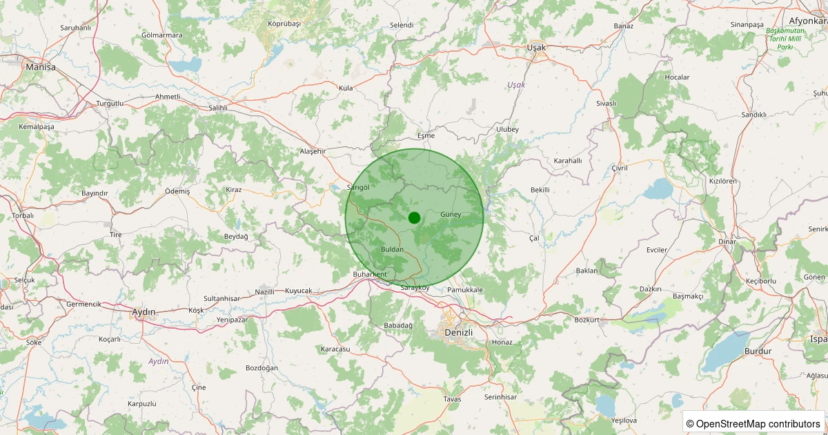 Son 7 gün içinde Buldan - Türlübey noktasından 100 km yarıçap içerisinde meydana gelen diğer depremler: